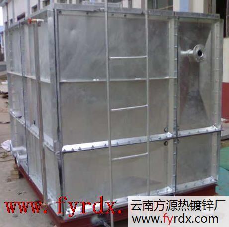 鍍鋅水箱主要采用優(yōu)質(zhì)的Q235鋼板沖壓而成,形成1000×1000、1000×500、500×500等標(biāo)準(zhǔn)板塊后經(jīng)熱浸鍍鋅處理后形成鍍鋅水箱板。